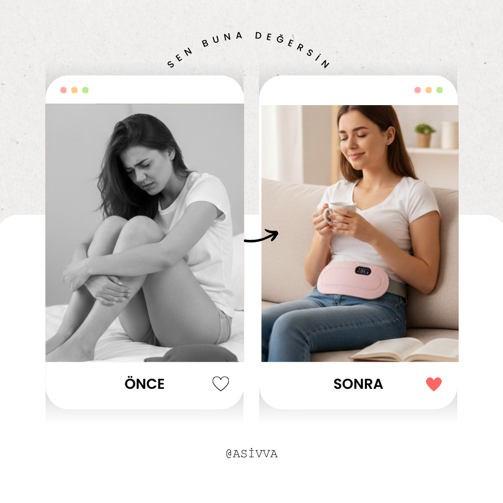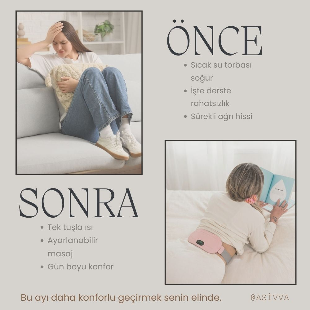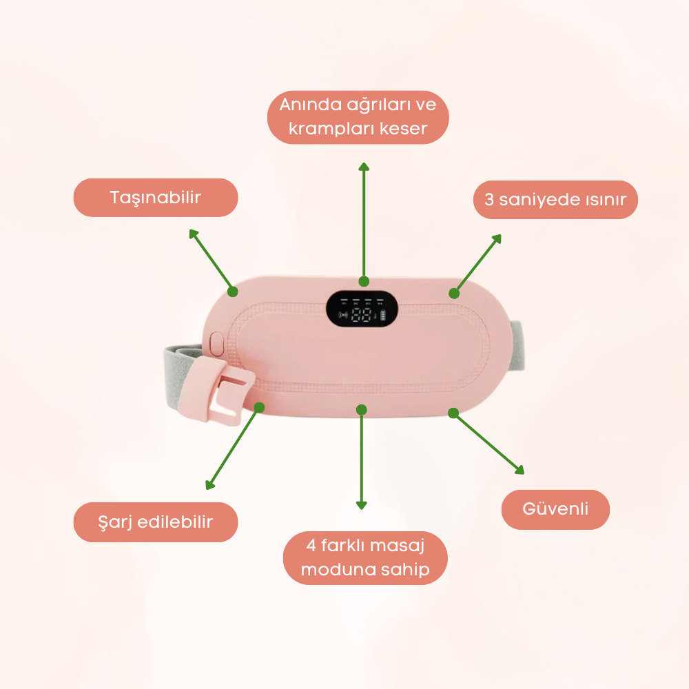 Ayarlanabilir ısı ve titreşim özelliği sayesinde regl dönemindeki kramp ve gerginliği hafifletmeye yardımcı olur. Kullanıcılarımızın büyük çoğunluğu ilk kullanımdan itibaren rahatlama hissettiğini belirtmektedir.