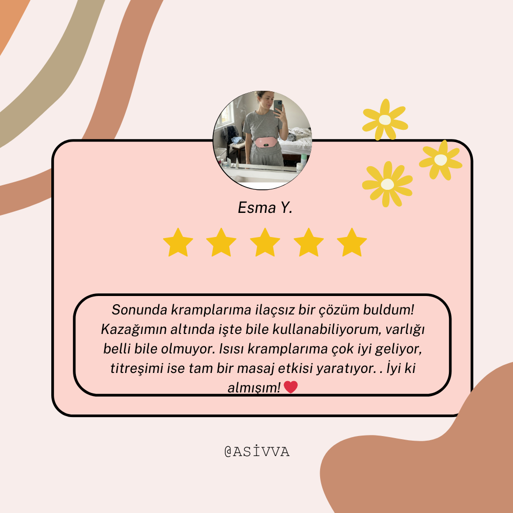 Çok iyi bir ürün, çabuk ısınıyor ve güzel bir titreşimi var, tavsiye ederim, adet öncesi krampları ve ağrıları hafifletiyor.